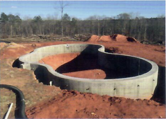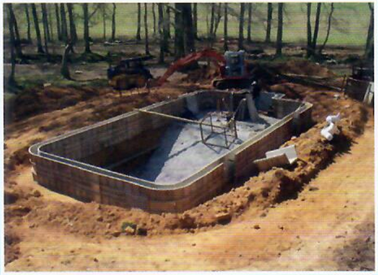 Once the concrete wall is cured, the pool is backfilled, and the grout concrete bottom is poured.
